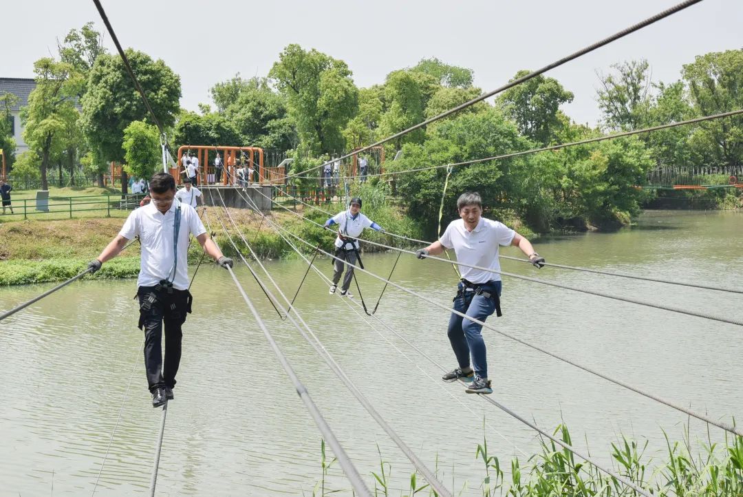 位于南潯雙林鎮(zhèn)的后壩營(yíng)地,占地500畝,集素質(zhì)拓展、文化教育、農(nóng)事體驗(yàn)等功能于一體。驚險(xiǎn)刺激的“水鄉(xiāng)穿越”項(xiàng)目迅速點(diǎn)燃員工熱情,“小馬過(guò)河”、“功夫繩橋”、“水上行軍”等關(guān)卡難度層層疊加,大家在碧水盈盈的怡人風(fēng)景中連闖十六關(guān),挑戰(zhàn)體能極限,收獲勝利喜悅。