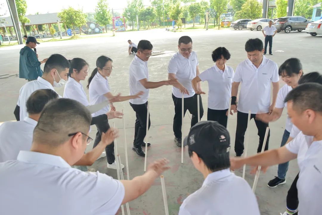 正午的烈陽(yáng)擋不住員工的熱情,逐漸升溫的夏風(fēng)更是奮進(jìn)的動(dòng)力。大家隨機(jī)分成四個(gè)隊(duì)伍,每組隊(duì)員集思廣益,確定隊(duì)名和口號(hào),向著勝利奮勇進(jìn)發(fā)。“同心結(jié)”、“鼓動(dòng)人心”、“同步接力”等豐富多彩的團(tuán)隊(duì)拓展活動(dòng),激發(fā)了大家通力合作的精神、迎難而上的勇氣和彼此扶持的信任。